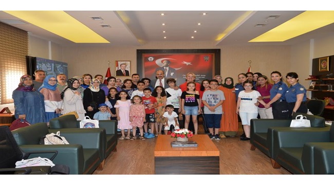 2018-2019 Eğitim Öğretim yılı İlkokul ve Ortaokul da okuyan Aziz Şehitlerimizin çocuklarına karne etkinliği düzenlenmiş olup İl Emniyet Müdürü Zafer Aktaş ve eşi Meryem Aktaş Hanımefendi şehit çocuklarımızı makamında kabul etti.
