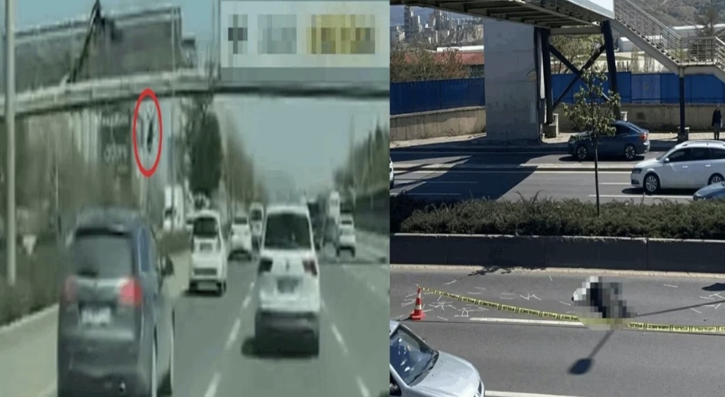 Olay anı, bir aracın kamerasına yansıdı. Görüntülerde Gürbüz’ün üst geçitten yola düştüğü anlar yer aldı.