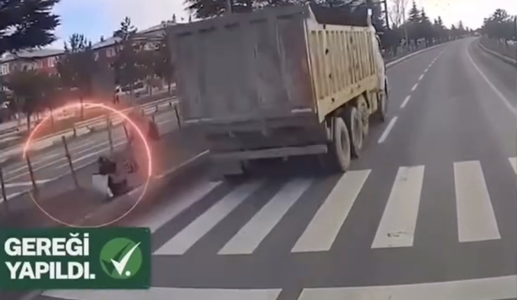 Edinilen bilgilere göre, olayda yaya geçidinde duran sağ şeritteki araç yayalara yol verirken, sol şeritten hızla gelen kamyon az kalsın yayalara çarpıyordu. Büyük bir faciadan saniyelerle dönülen olay sonrası yapılan incelemelerde, kamyon sürücüsünün C.A. olduğu tespit edildi. Sürücü, polis ekiplerince yakalanarak hakkında gerekli işlemler yapıldı.
