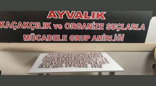 Uyuşturucuyla Mücadele kapsamında Ayvalık Kom Grup Amirliğince alınan istihbari bilgiler neticesinde yapılan çalışmada, İzmir ilinden uyuşturucu madde ticareti yapmak amacıyla uyuşturucu satın alarak otobüs ile Ayvalık ilçesine gelen M.Y. adlı şüpheli uygulama noktasında yapılan kontrolde 836 adet uyuşturucu hap ile yakalandı.