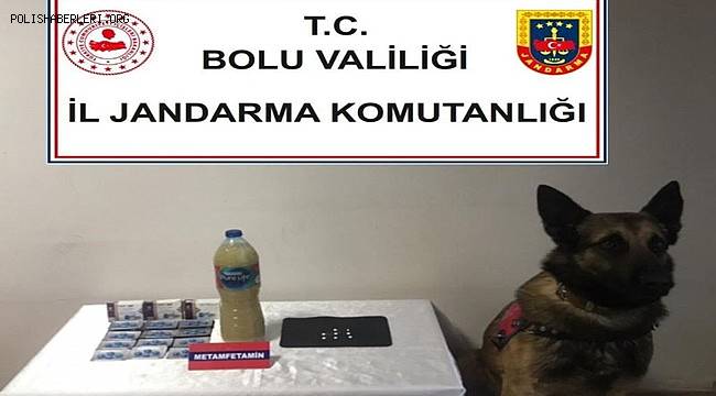 Edinilen bilgiye göre, TEM Otoyolu İstanbul istikametinde seyir halinde giden yolcu otobüsü Dörtdivan ilçesinde jandarma ekipleri tarafından durduruldu. Durdurulan yolcu otobüsünün bagajı jandarma ekipleri ve ‘Asır’ isimli dedektör köpekle arandı. Arama sırasında bir şüphelinin valizine dedektör köpek tepki verdi. Jandarma ekipleri, şahsın valizinde gizlenen su şişesinde bin 575 gram sıvı metamfetamin ve 68 uyuşturucu/uyarıcı hap ele geçirdi. Şüpheli gözaltına alındı.