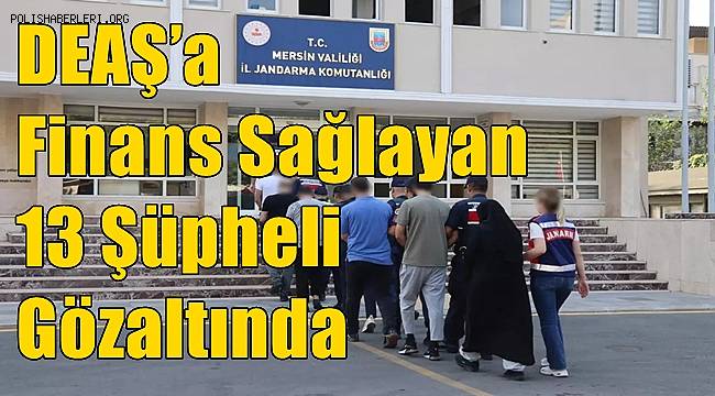 İl Jandarma Komutanlığı ekipleri Milli İstihbarat Teşkilatı'nın (MİT) desteğiyle, DEAŞ silahlı terör örgütünün finans kaynaklarının ortaya çıkarılması, faaliyetlerinin deşifre edilmesi ve engellenmesine yönelik çalışma başlattı. Çalışmada, 13 şüphelinin terör örgütüne finans sağladığı tespit edildi. Şüphelilere yönelik Mersin Cumhuriyet Başsavcılığı koordinesinde Mersin merkezli Kahramanmaraş, İstanbul, Konya, Hatay, Kayseri, Van, Bitlis ve Karaman'da eş zamanlı operasyon düzenlendi. 13 şüpheli gözaltına alınırken, adreslerdeki aramada 1 tabanca ile çok sayıda materyal ve doküman ele geçirildi.