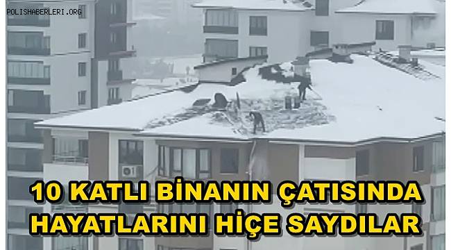 Elazığ'da iki kişi, 10 katlı bir binanın çatısındaki karı güvenlik önlemleri almadan temizlerken cep telefonu kamerasıyla kaydedildi. Kentte geçen hafta etkili olan kar yağışının ardından donla birlikte çatılarda biriken kar kütleleri tehlike oluşturmaya başladı. 2 kişinin hiçbir güvenlik önlemi almadan, 10 katlı binanın çatısındaki karı küreklerle temizlediği anlar cep telefonu kamerasıyla kaydedildi.
