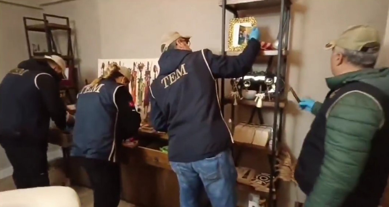 Şüphelilere ait ikametlerde ve 3 iş yerinde yapılan aramada ise 1 adet tabanca, 2 adet şarjör ve 172 adet fişek ile çok sayıda dijital materyal ele geçirildi.