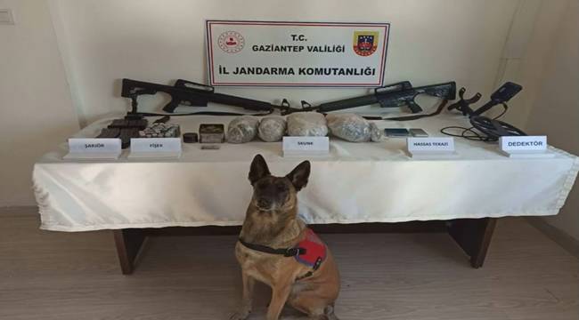 Gaziantep İl Jandarma Komutanlığı ekipleri, uyuşturucu ve uyarıcı madde ile mücadeleye yönelik Cumhuriyet Başsavcılığı koordinesinde çalışma yaptı. Yapılan çalışmalar neticesinde Nurdağı ilçesinde ikamet eden S.Ş., S.Ş. ve Ş.Ş isimli şahısların uyuşturucu madde imal ve ticareti yaptığı tespit edildi. Şüpheli şahısların ait ikamet adresine yapılan aramalarda ise 4 kilo 75 gram skunk cinsi uyuşturucu madde, 2 adet dijital hassas terazi, 1 adet uyuşturucu madde öğütme aparatı, 2 adet uyuşturucu kullanma aparatı, 1 adet ekili vaziyette skunk bitkisi, 2 adet otomatik av tüfeği, 40 adet av tüfeği fişeği, 5 adet av tüfeği şarjörü, 3 adet cep telefonu ve 1 adet mayın dedektörü ele geçirildi.