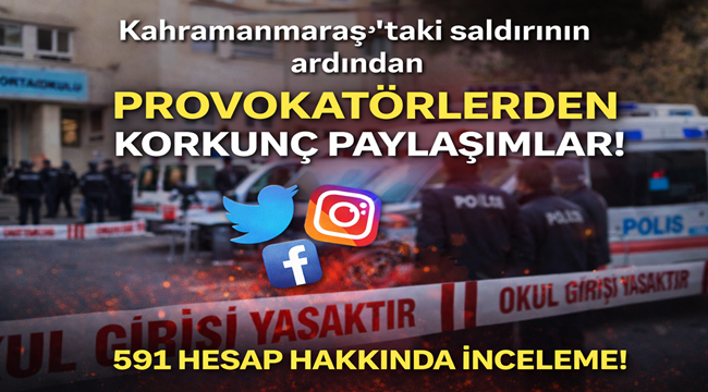 Kahramanmaraş’taki okul saldırısının ardından sosyal medya platformlarında görüntü paylaşan, korku yayan, şiddeti meşrulaştırmaya çalışan ve infial uyandırmayı amaçlayan kişilerin yetkili birimler tarafından yakından takip edildiği bildirildi.