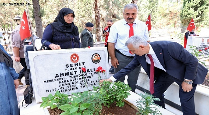 Kahramanmaraş Şeyh Adil Mezarlığı'ndaki şehitlikte, Kur'an-ı Kerim okundu, dualar edildi. Vali Mükerrem Ünlüer, Şeyh Adil Mezarlığı'ndaki şehitlikte kabirlere karanfil bıraktı, şehit aileleriyle bir süre sohbet etti.