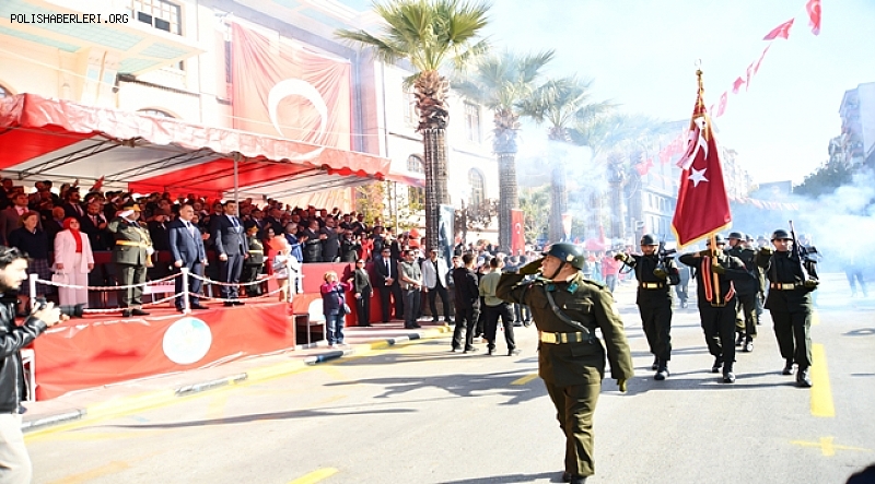 Törende bir konuşma yapan Manisa Valisi Vahdettin Özkan şunları söyledi: “Gazi Mustafa Kemal Atatürk'ün önderliğinde Aziz Milletimizin Kurtuluş Savaşı'nı kazanarak, zaferini Cumhuriyet ile taçlandırdığı günün 101. yıl dönümünü gurur ve coşkusuyla kutluyoruz. 101. yıl dönümüne şahitlik ettiğimiz Cumhuriyet; milletimizin olağanüstü fedakârlığı ile İstiklalimize göz diken emperyalistlere karşı kahramanca bir direniştir. Cumhuriyet; bağımsızlık aşkı uğruna atan yüreğimizdir. Cumhuriyet; faziletin, halk iradesinin, hukuk güvenliğinin, medeniyetin tecellisidir. Cumhuriyet; yurdun dört bir yanını saran işgal ateşi karşısında her daim ümitvâr olan Türk Milletinin ruhundan doğmuş bir şaheserdir. Cumhuriyet; tehlikede olan vatanın bütünlüğünü ve milletin bağımsızlığını yine milletin azim ve kararlılığı ile kurtaracağı iradedir. Cumhuriyet; Türk Milletinin hiçbir esareti kabul edemeyeceğini, geçmişte olduğu gibi gelecekte de tam bağımsızlığın dışında asla bir seçenek tanımayacağını zihinlere nakşetmiştir.