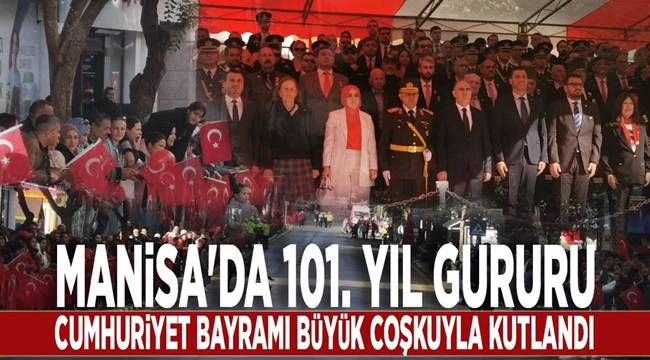 Manisa’da cumhuriyetinin 101. yılı kutlamaları Manisa Valisi Vahdettin Özkan’ın makamında tebrikleri kabulü ile başladı. Tebriklerin kabulünün ardından Manisa Valiliği önünde resmi geçit töreni gerçekleştirildi.