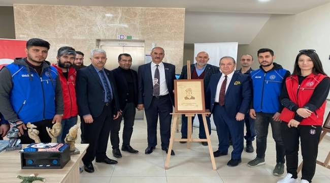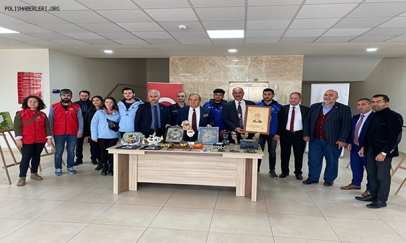 Hatıra fotoğraflarının da çektirildiği sergide, Kaymakam Yıldız ' a karakalem portresi takdim edildi.