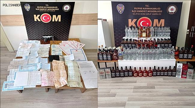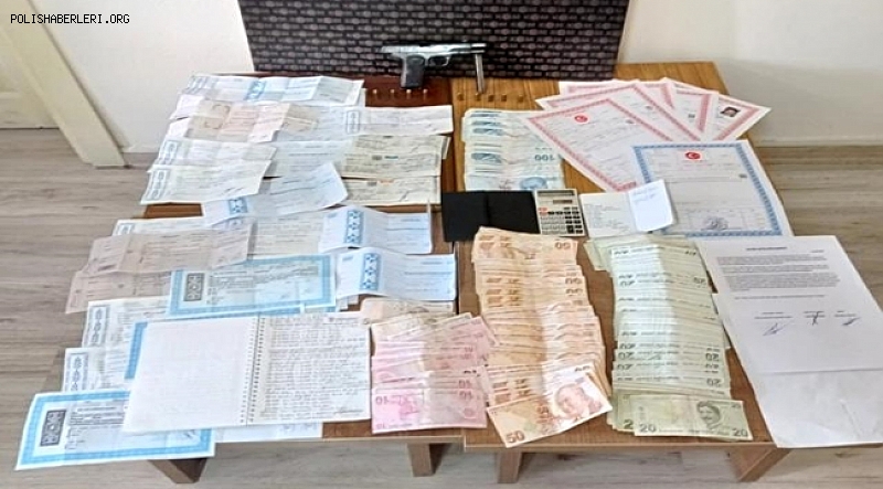 İl Emniyet Müdürlüğünden yapılan açıklamaya göre, Silifke İlçe Emniyet Müdürlüğüne bağlı Kaçakçılık ve Organize Suçlarla Mücadele (KOM) Grup Amirliği ekiplerince, tefecilik yaptıkları belirlenen şüphelilerin yakalanmasına yönelik çalışma başlatıldı. Yürütülen projeli çalışma kapsamında, Ş.Y. isimli şüphelinin evine düzenlenen operasyonda, bir adet ruhsatsız silah, 10 mermi, 396 bin 350 TL'lik değişik isimler adına düzenlenmiş senet, 140 bin liralık çek, 10 bin 170 TL para, 2 adet alacak kişilerinin listesinin olduğu ajanda, tapu ve sözleşme kağıtları ile 244 şişe gümrük kaçağı içki ve 15 gram esrar ele geçirildi. Gözaltındaki şüphelinin emniyetteki işlemlerinin sürdüğü bildirildi.