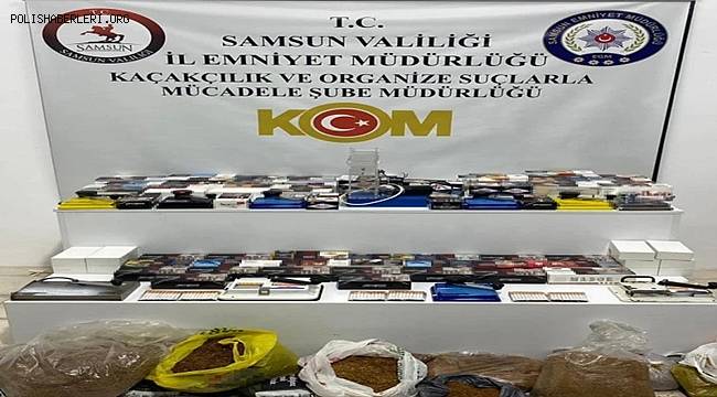 Edinilen bilgiye göre, Samsun Cumhuriyet Başsavcılığı koordinesinde kaçakçılık suçlarıyla mücadele kapsamında çalışma yapan Samsun Emniyet Müdürlüğü Kaçakçılık ve Organize Suçlarla Mücadele (KOM) Şube Müdürlüğü ekipleri Atakum ilçesinde operasyon düzenledi. Yapılan aramalarda, 14 bin 920 adet doldurulmuş makaron sigara, 16 bin adet bandrolsüz boş makaron, 20 adet elektronik sigara likidi, 10 adet manuel sigara sarma makinesi, 1 adet elektrikli sigara sarma makinesi ve 24 kilo açık kıyılmış tütün ele geçirdi. Olayla ilgili 2 kişi hakkında yasal işlem başlatıldı.