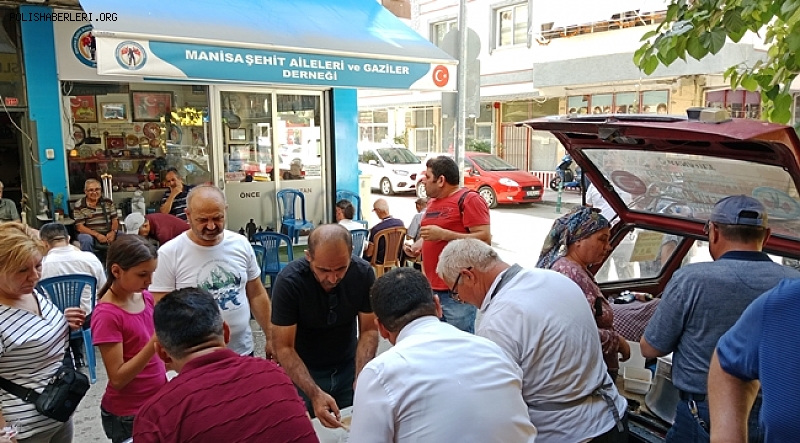 Manisa Şehit Aileleri ve Gaziler Derneği Başkanı Adnan Kaya yaptığı açıklamada "Bu gün dernek binası önünde Muharrem ayı nedeniyle 2 bin 500 kişilik aşure hayrı gerçekleştirdik. Aşure hayrımıza Sakarya ilimizden Şehit annesi Cevriye Törün ve Gazi eşi Yasemin Hız, İzmir'den Dernek üyelerimiz gazilerimiz , Manisa'dan çok sayıda protokol üyesi, dernek üyelerimiz vatandaşlarımız katıldı. Aziz şehitlerimizin ve vefat eden kahraman gazilerimiz için aşure hayrımızı gerçekleşti. Dualara ettik. Allah'ım yaptığımız hayrımızı ve dualarımızı kabul etsin. Tüm katılımcılara ayrıca katıldıkları için teşekkür ederim" dedi.