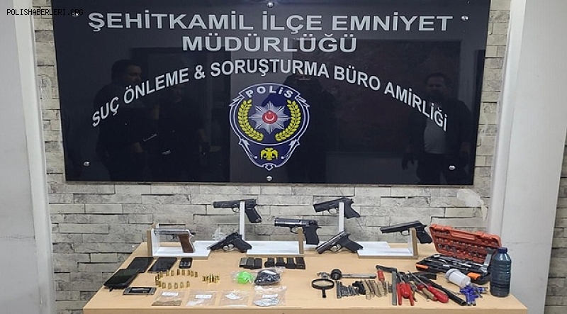 Şehitkamil İlçe Emniyet Müdürlüğü ekiplerince yapılan çalışmalarda; 7 adet ruhsatsız tabanca, 36 adet fişek, 7 adet şarjör, kurusıkı silahları çevirmede kullanılan malzemeler ile bir miktar uyuşturucu madde ve 1 adet hassas terazi ele geçirildi. Operasyon kapsamında 3 şüpheli şahıs yakalanarak gözaltına alındı.