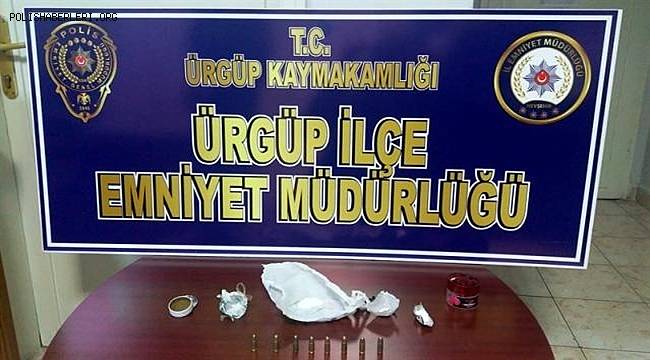 Ürgüp İlçe Emniyet Müdürlüğü ekipleri tarafından şüpheli E.K.'nin üst ve ev aramasında 11,7 gram metamfetamin, 8 adet tabanca mermisi ele geçirildi. Polis ekipleri tarafından gözaltına alınan E.K. emniyetteki işlemlerinin tamamlanmasının ardından sevk edildiği adli makamlarca tutuklanarak Nevşehir E Tipi Kapalı Cezaevine gönderildi.